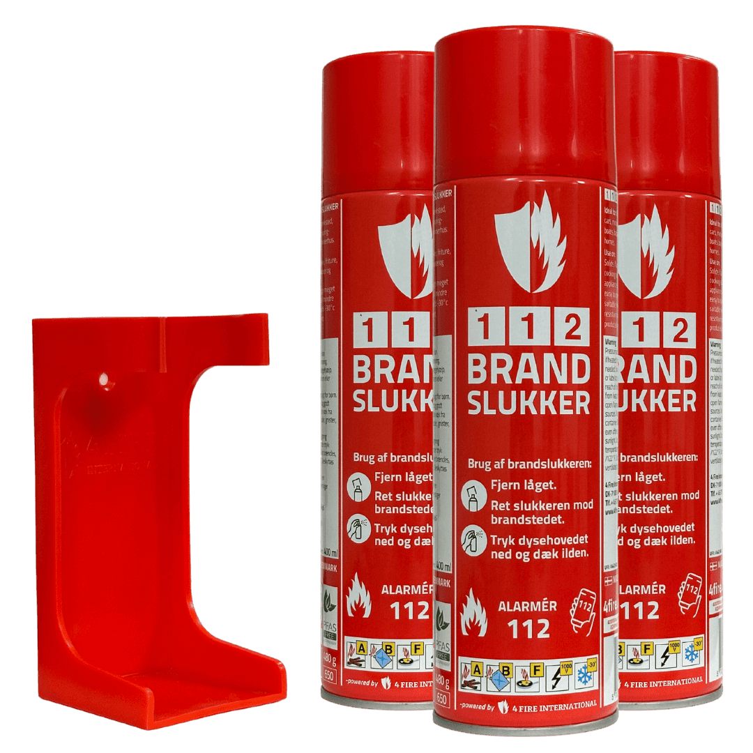 Køb en 3-pak 112 BRANDSLUKKER og få ét gratis vægbeslag, og fri fragt.