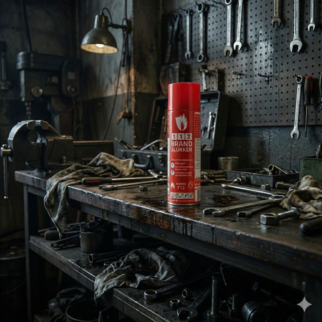 Et værksted indeholder typisk olie, kemikalier, opladere og elværktøj – alle potentielle brandkilder. 112-brandslukkeren slukker effektivt både væske-, el- og materialebrande, uden at efterlade skadelige rester på værktøj, maskiner eller biler.
